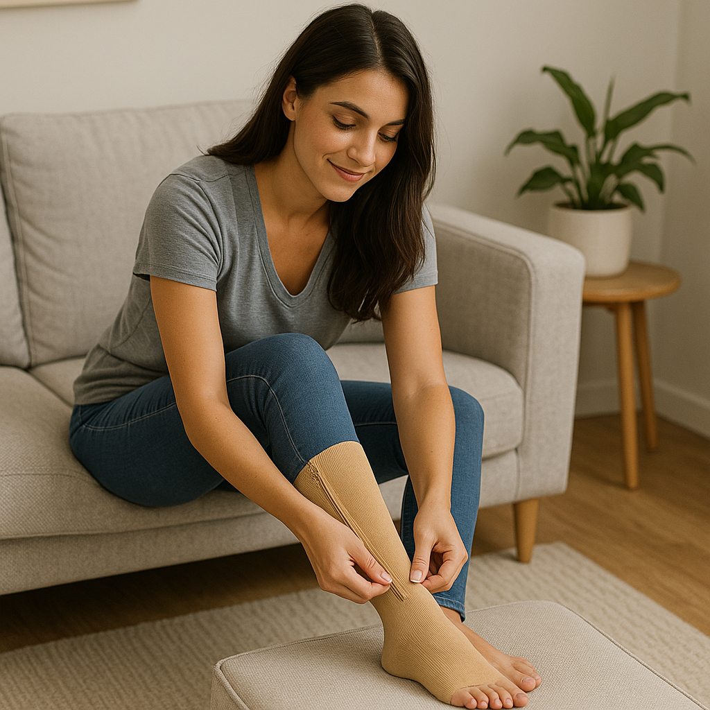 Las medias aplican presión gradual, promoviendo el flujo sanguíneo desde los tobillos hacia arriba, lo que mejora la circulación y reduce la hinchazón.
